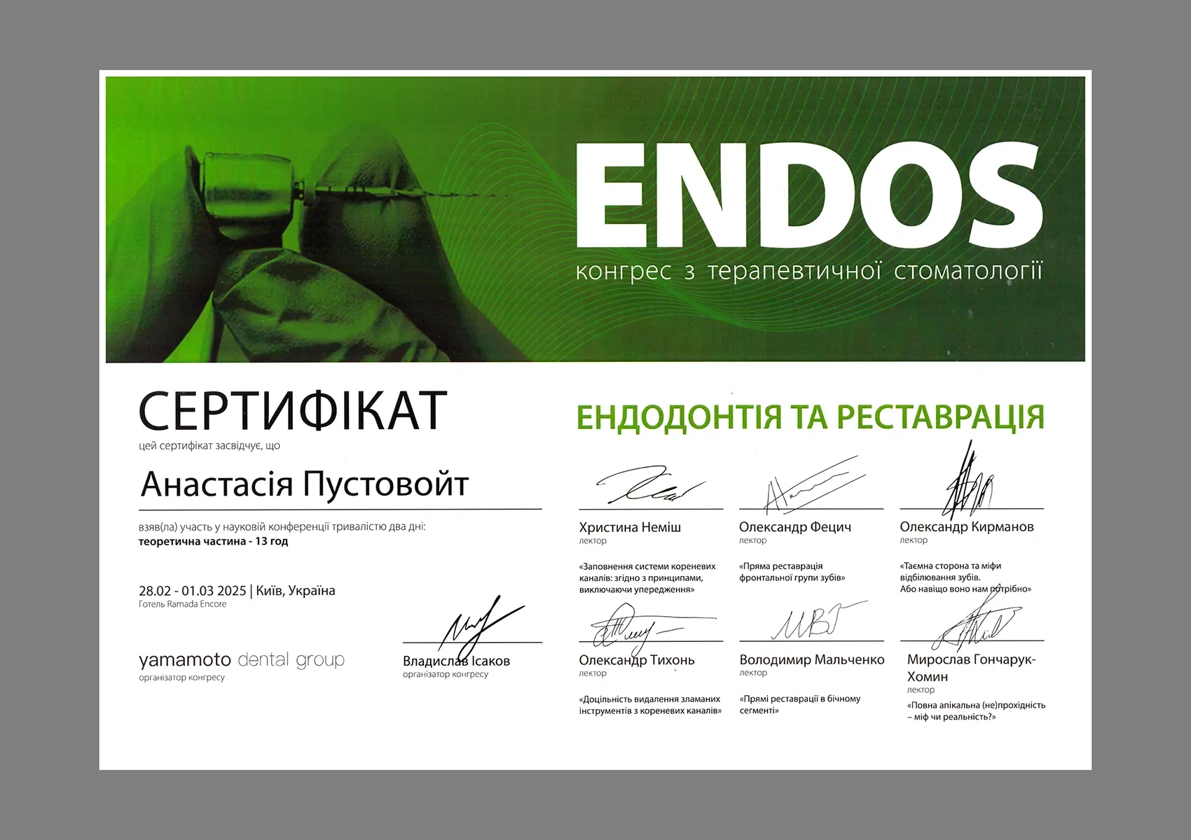 Дипломи та сертифікати лікаря