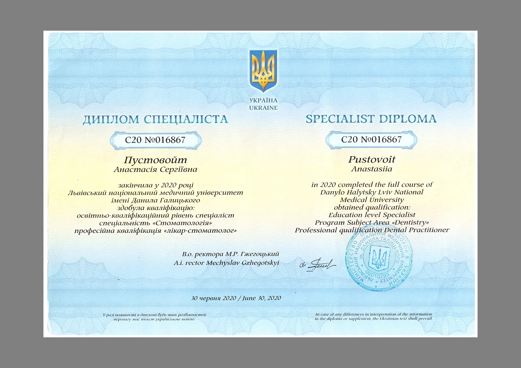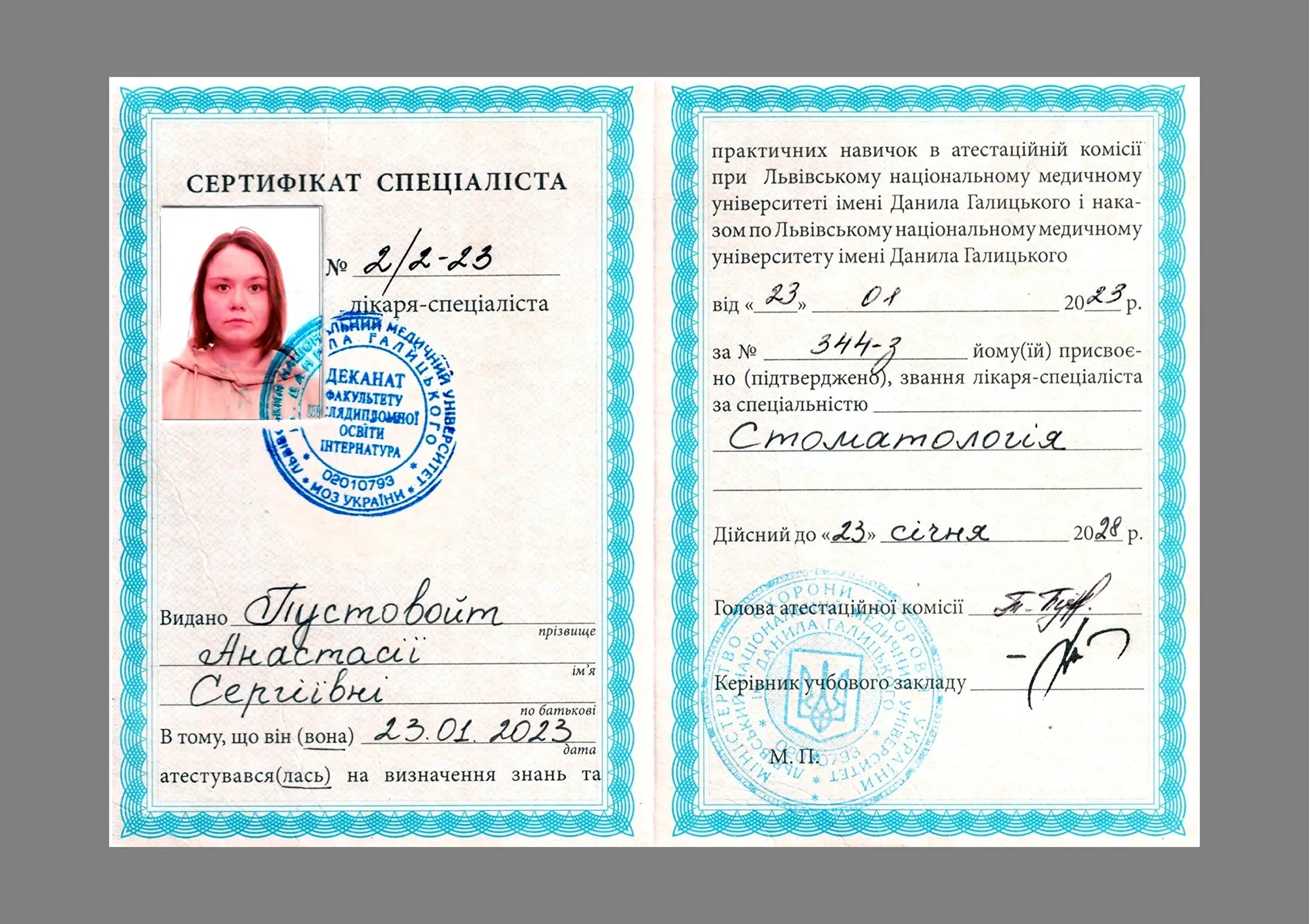 - Освіта: Львівський національний медичний університет імені Данила Галицького