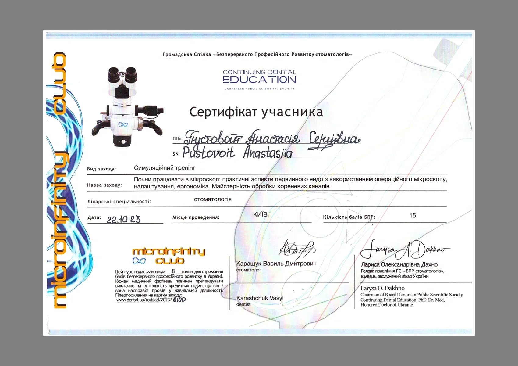- учасник медичних конференцій, майстер-класів.