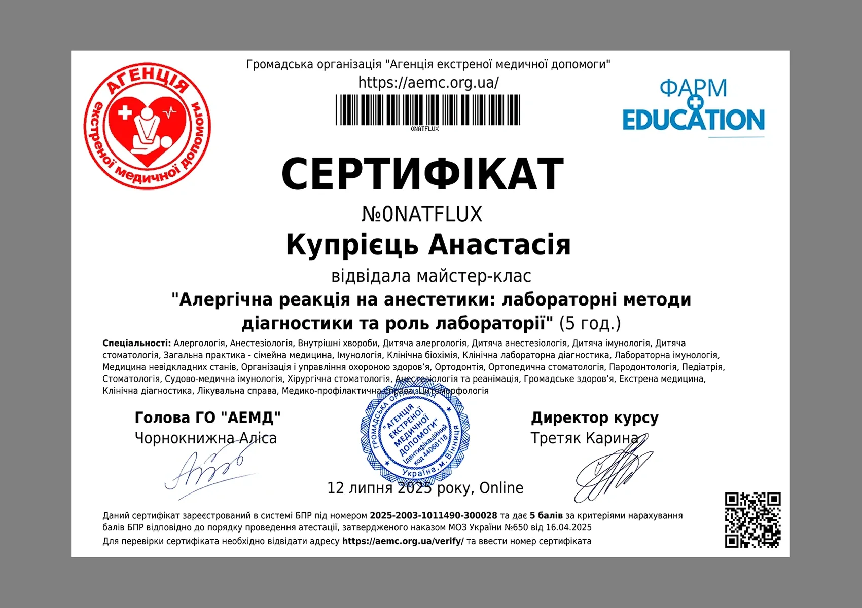 - Образование: Национальный медицинский университет имени А. А. Богомольца