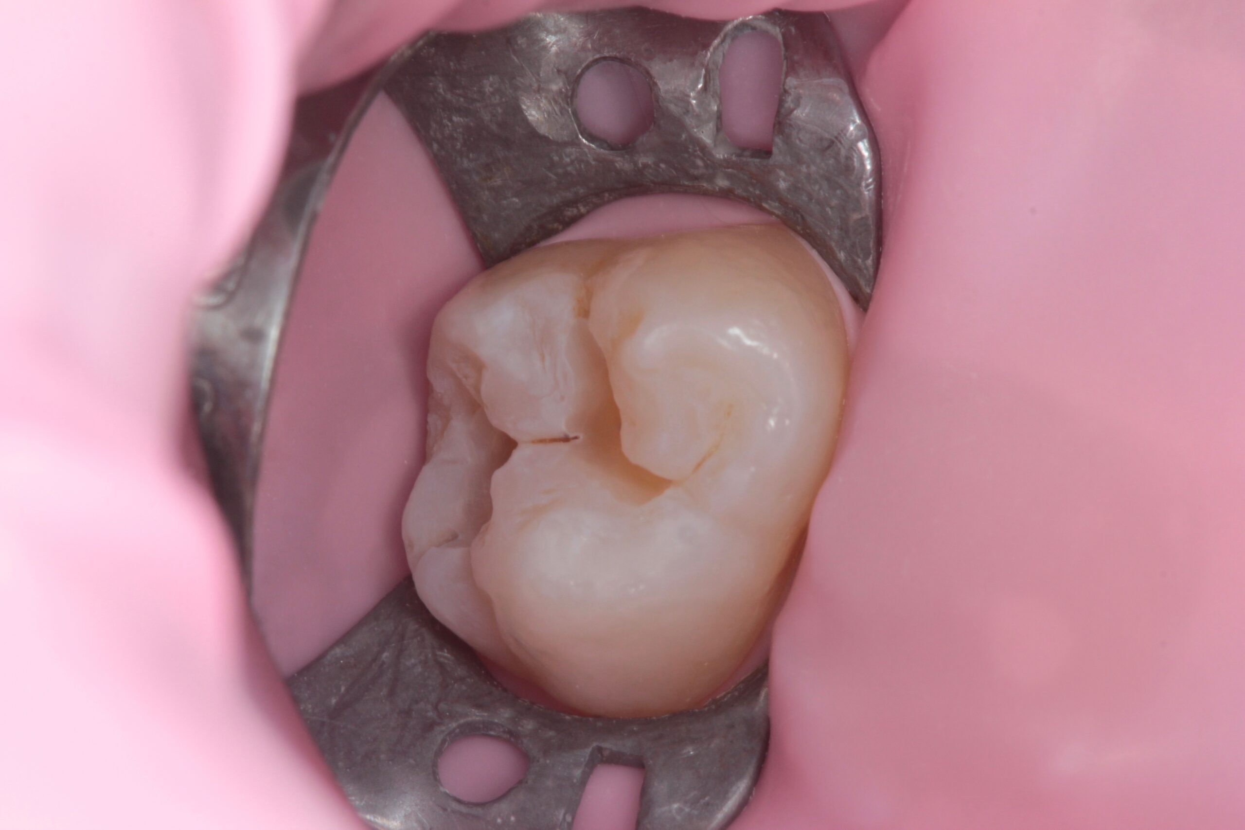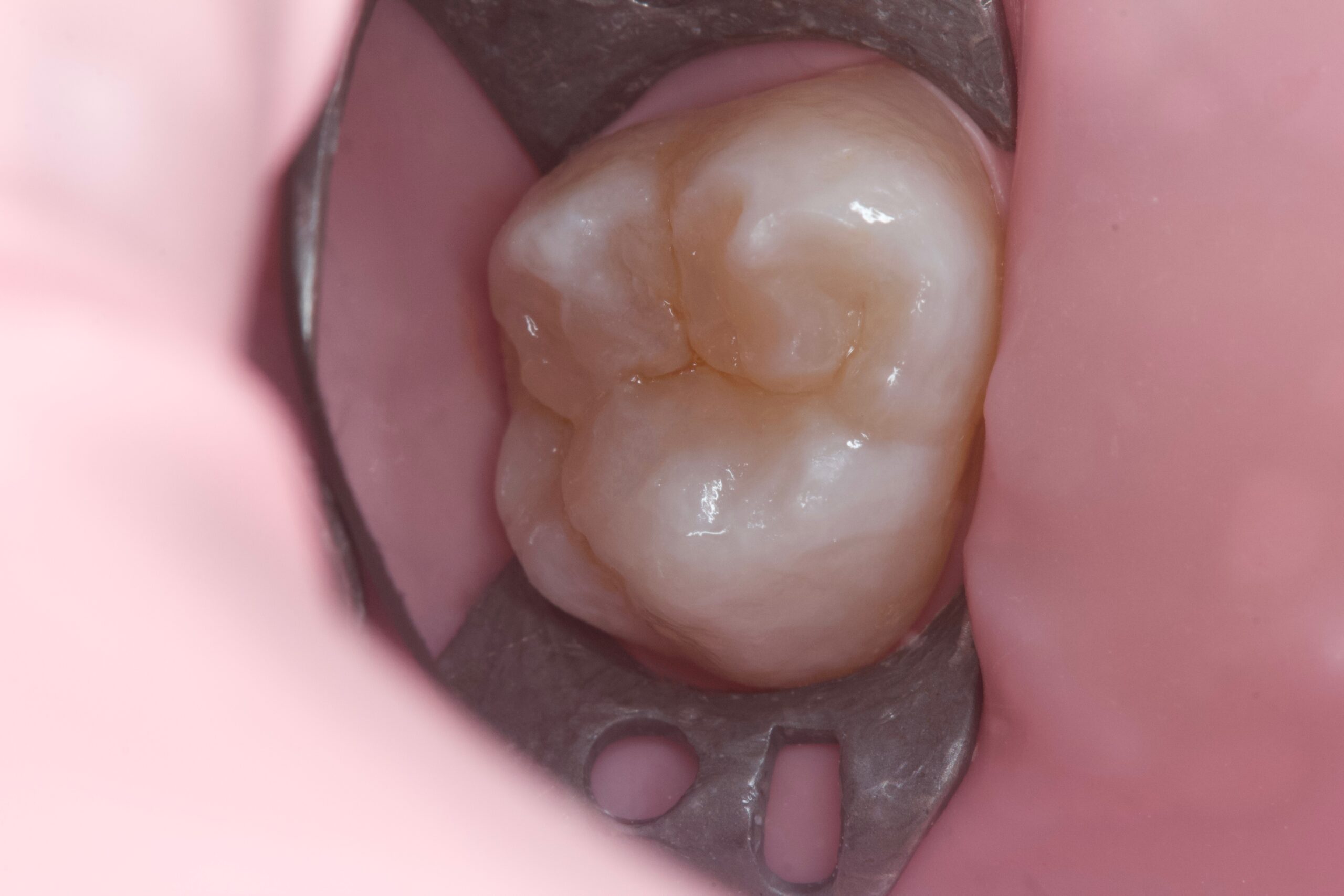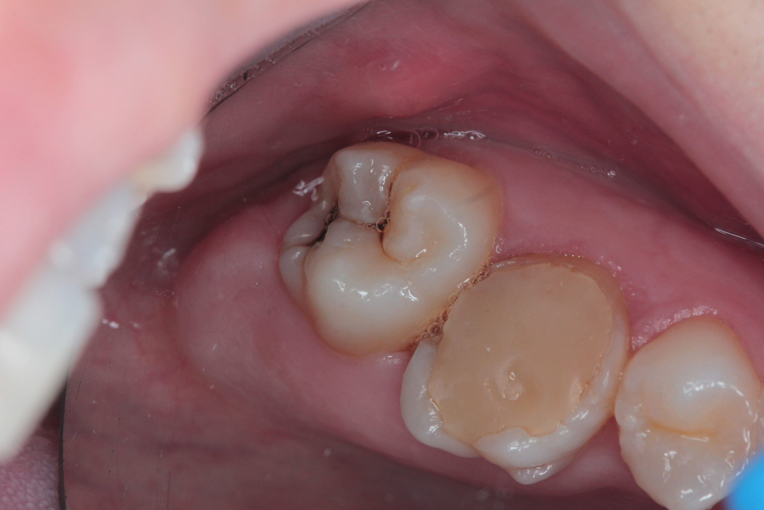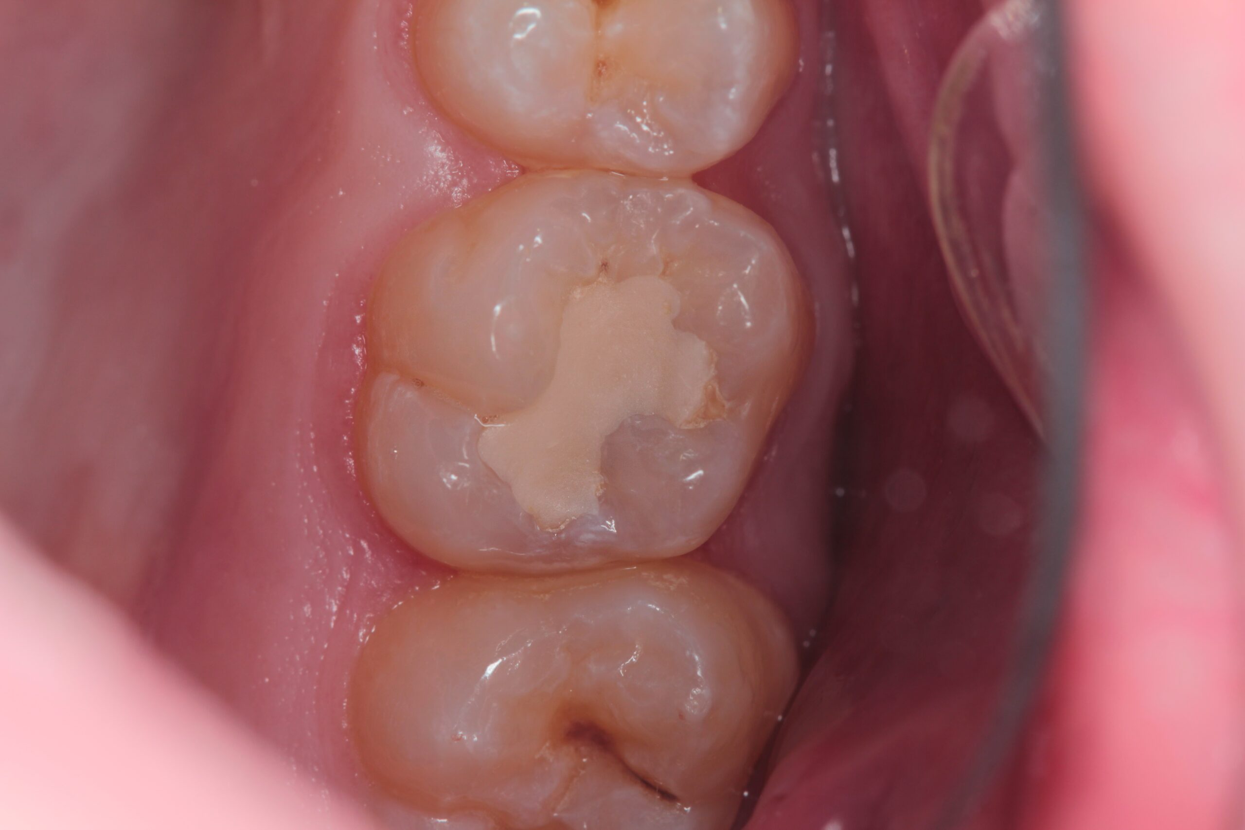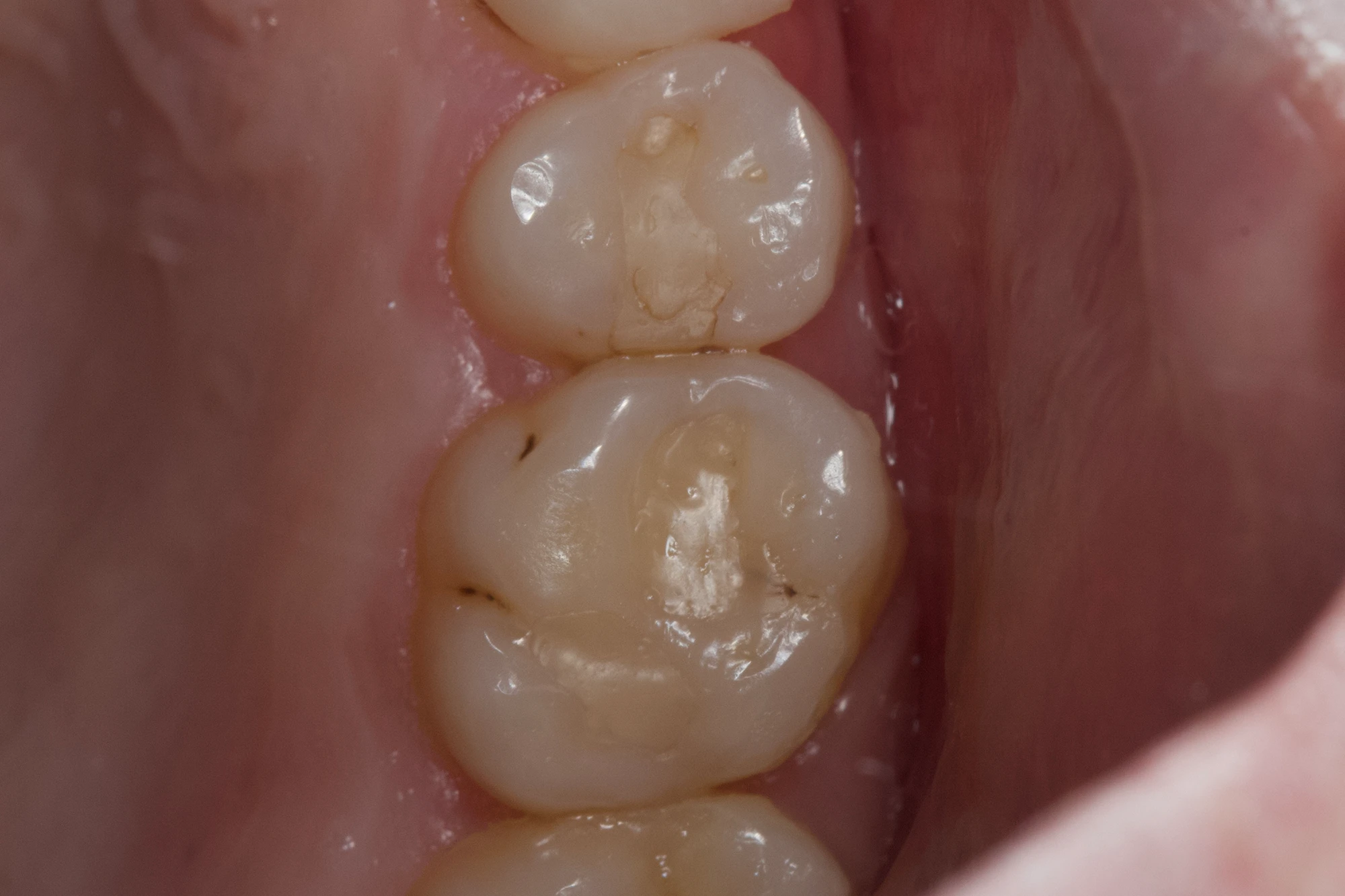 - поява поверхневої крейдяної або з часом темної плями на коронці зуба, почорніння фісур зуба, зміна кольору зуба